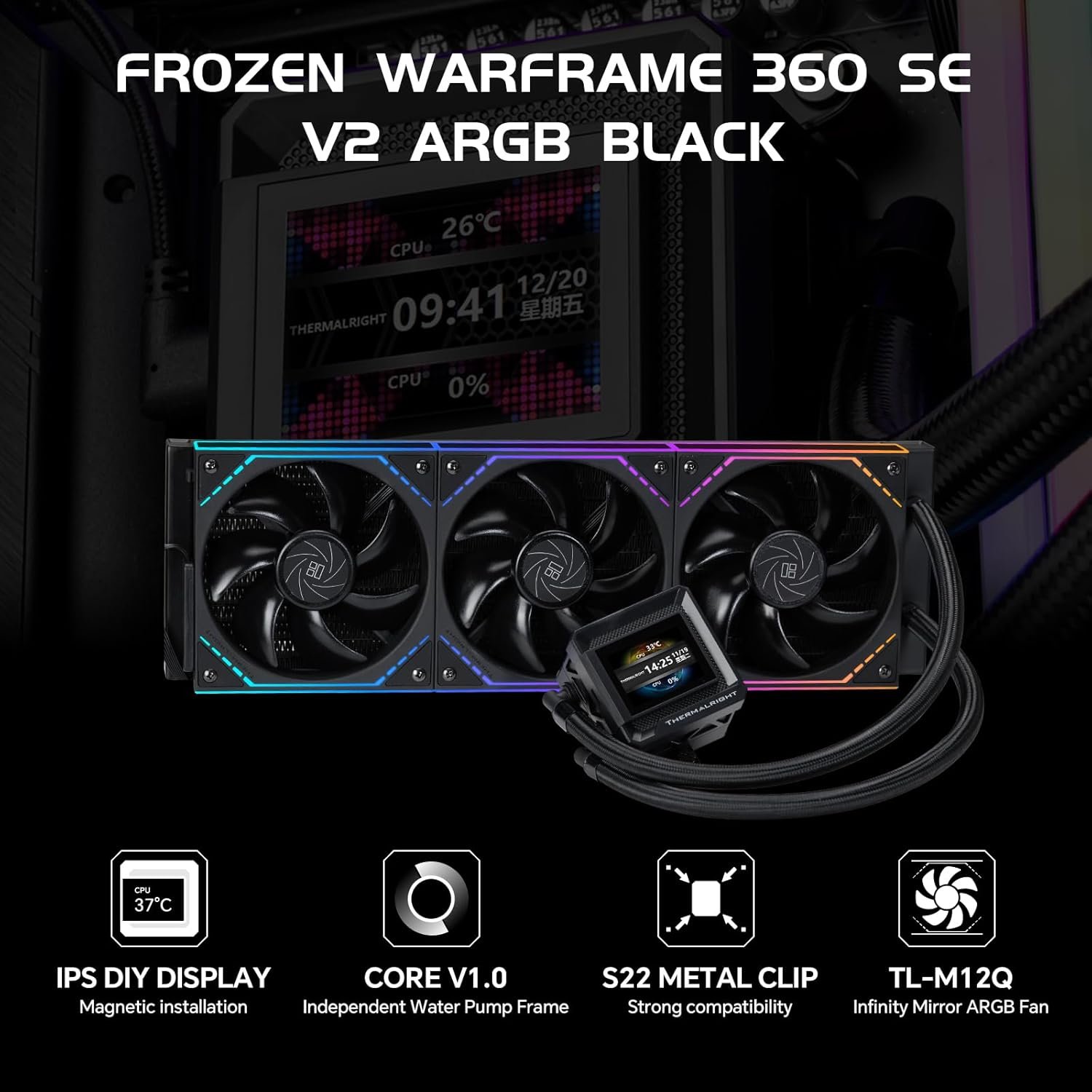 - REMOVABLE AND CUSTOMIZABLE LCD DISPLAY: Thermalright FW360 SE ARGB V2 CPU water cooler equipped with a large 2″ LCD screen which features sharp 320×320 pixel resolution provides a visually stunning view in PC case. With the 6 switchable system modes, user can view and customize real-time statistics, Upload and see custom pictures and animated gifs. Please download the application in thermalright official website.